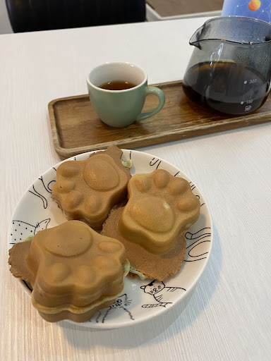 I ordered the mocha cappuccino, and the owner was extremely accommodating and helpful. He let me know that the difference between a latte and a cappuccino (I always get them mixed up) so I could order the right thing. The paw shaped waffles were also fresh and tasty. Neither my drink or the waffles were very sweet, but that's just the way I like it. If your palate runs sweet I would definitely ask to make sure things are made to your liking.