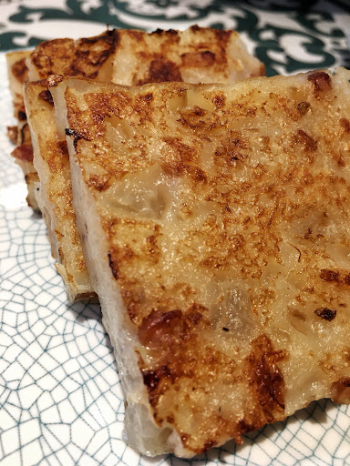 辣味蘿蔔糕 外層煎的香脆,內層的臘肉香與蘿蔔香味十足,不用沾醬也足夠美味當然有沾醬又是另一種風味~通常蘿蔔糕都會有加蝦米,這家很棒的是沒有蝦米!讓不吃蝦的人也可以吃到很美味的蘿蔔糕呢!