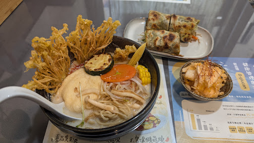 Read moreMaybe the best vegan Ramen I ate in Taiwan. I've to the restaurant to try their vegan options, the menu is only in Chinese but you can ask the waitress and she'll help you translate. From the menu I picked their soy milk & pomelo sauce ramen. The dish is huge and beautifully presented, it come with a fried shimchi mushroom, veggies and noddles. The sauce was delicious and slightly sweet and it was hard to stop eating. The service was kind and the place have a traditional old...
