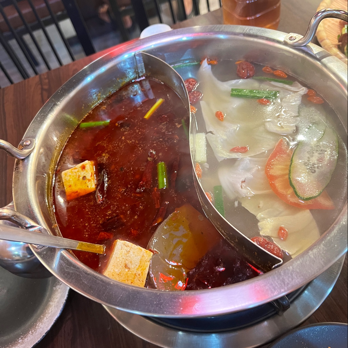 Read more初次體驗,這家的串串燒 有點餐也有自助拿取餐點 菜單有20$乙份乾碟,吃過後是可以2人點選乙份,味道尚可,帶鹹帶香。不會特別突兀 當點點選鴛鴦鍋、一邊麻辣一邊養生湯 個人推薦可以點選麻辣單鍋,麻辣鍋底不確定會不會比較多、當天麻辣是點選大辣,麻辣鍋是有加豆蔻、乾辣椒、花椒與少許藥材 味道是較溫順、不算刺激。 相對比較我個人更喜歡,花椒的麻與香多一點,辣椒油少一點😅味道會更豐富 另一邊則是白湯,店員說用大骨頭/還有蔬果 與及看得到的少許藥材,微白湯鴛鴦鍋 但吃過後初體驗,這白湯完全對於我非常不ok 如有用餐同感可以點讚😓😓😓 其他 對於自取區域有三十項可以自行選擇 每項都為10$ 對於胃口小感覺,可選擇吃多少拿多少 份量不會太大,選擇喜歡的可持續拿取 用餐感覺較不推薦有毛肚/白湯 沾醬料有三種、蒜末/香菜/蔥花 這裡有提供香菜剛好打中我們的點,...