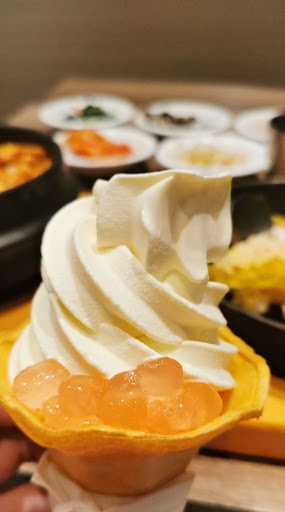 5.結賬姐姐:也是打霜淇淋的姐姐,我排在換霜淇淋的人後面,這個姐姐說結賬的麻煩到那邊等一下,輪到我的時候幫我結完賬,問是不是要現在換霜淇淋,這時才理解了順序【1點餐後賬單夾放在桌上2吃飯3換霜淇淋(可外帶,有餅乾或杯子可選)】,不過像我一樣還沒吃就去結賬換霜淇淋也是可以,只不過可能會發生6