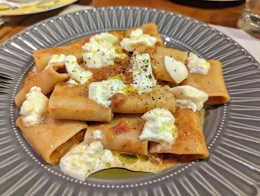 Was really craving some Italian food so we ended up here, and so glad we did! It's pricier here but mostly worth it in my opinion! We had octopus, pork chop, paccheri with burrata and tomato sauce, shrimp pesto, and tiramisu! The paccheri pastaaaaaa was sooooo goood I could have eaten three plates of it. Everything was very flavorful and quite authentic to me. The only thing I didn't like as much was the shrimp pesto, I found the shrimp a bit overwhelming but that's just my opinion. Also we had an iced latte but it's just an Americano with some milk on the side, it was pretty watery to me. The waitress was lovely and helpful! I will definitely come back here for...