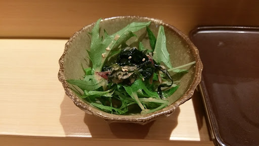 Read more菜單依序是,蛤蠣湯、一白水成-特別純米酒(秋田)、白子茶碗蒸佐生海苔芡汁、黃鯛握、墨烏賊握、白旗腹握、微炭炙黑鮪大腹握、赤海膽握、滋賀縣小鰶握、北海道生筋子握(黑龍酒糟漬)、香川縣捲海老握、招待墨烏賊鰭煮、伯樂星-純米吟釀、炸北海道厚岸牡蠣、名古屋赤味噌湯、炸銀杏與半熟烏魚胃袋、瓢瓜捲、烤年糕紅豆湯。 蛤蠣湯在略為寒冷的天氣,作為稱職的第一品,讓身子暖和了許多,鱈魚白子茶碗蒸雖略為清淡,但也相當的好吃,與第一罐酒相當搭。 黃鯛握中規中矩、墨烏賊握上面的松露鹽對我來說有點過鹹了點,白旗腹無可挑剔、微炙的黑鮪大腹,讓油脂的溫度稍升,入口不會覺得過生且微微帶出大腹的油香,讓人感受到師傅的用心,畢竟是這個季節,也無法對海膽有太多的苛求,赤海膽握也算中規中矩,沒有什麼異味與藥水味,跟一白水成有相當好的相性,日本進口的小鰶握也是中規中矩,至少目前在台灣吃過的,都沒有令我滿意的。或許是我比較不喜歡這種醋漬過的發光魚類,生筋子握我在前幾年初訪的時候也吃過,今天也是相當的出色,黏稠且帶有鮮味的口感,海老握相當地出色阿,半生的熟度中帶著生蝦的黏稠,蝦的頭部鮮味與身的蝦殼香氣,同時又帶著甜味,這一握相當出色,招待的墨烏賊鰭軟嫩得令人意外,北海道厚岸生蠔炸,也是相當的出色,彈牙鮮明的唇邊,本體的鮮甜,一旁的甜味噌與桔子能轉換些口味,中規中矩的赤味噌湯,挺好喝的但沒啥新意,炸銀杏與半熟的烏魚胃袋,單吃略腥了些,但跟後半段的酒-伯樂星...