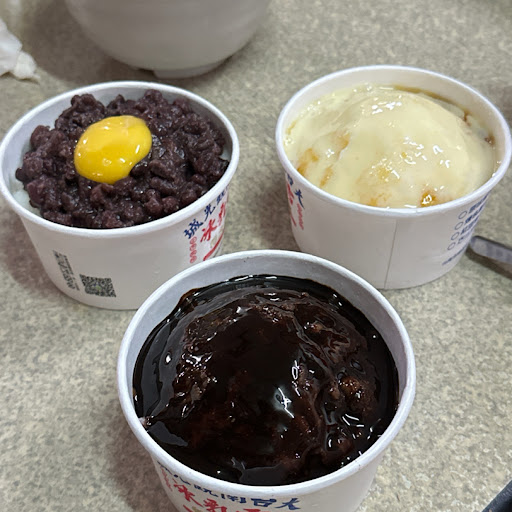 紅豆雞蛋雪乳冰 💰55 鋪超滿的紅豆蓋上一顆雞蛋。