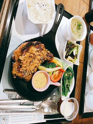 Read more驚訝、驚奇! 自己算是半個佳里人,一直到朋友邀約才有勇氣踏入這個已經聽聞很久的餐廳🍴 原本以為是一般的家庭式簡餐,孰不知,味道很讚! 本身是花生醬愛好者,對花生醬很熱衷,於是乎點了花生醬雞腿排、朋友點了豬排。 上菜速度適中,沒有等到太久。 湯品味道不錯,沒有過鹹;小菜調味都很棒、不會太油!主菜雞腿排配上花生醬更是完美到一個不行! 沒有用餐時間限制,用完餐還可以點他們琳瑯滿目的小蛋糕犒賞自己! 另外也有提供早午餐服務,營業時間比較短,所以想吃餐的夥伴要特別留意一下營業時間,避免撲空了! 還沒有試試他們的下午茶、早午餐,下次可以再試試看!絕對會帶家人一再造訪的餐廳。 微微的缺點是,如果不喜歡用餐後身上殘留味道的客人,可能要三思。餐點的肉味、油煙味會咖在衣服上,這是唯一美中不足的地方 以後又多了一個地方可以買生日蛋糕!
