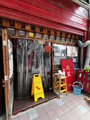 小小的店僅有八個座位,沒有訂位或者預留餐點幾乎吃不到,不難想見火星的熱門程度。裡裡外外的牆都漆上鮮豔的紅色,門口以塑膠門簾隔開,走進店內,裡頭掛滿各式畫作與公仔,以及許許多多聲援香港的裝置藝術和貼紙供人取用。