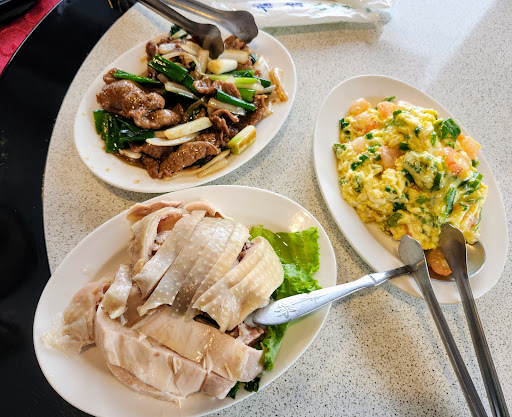 早一周前致電預約5/4中午11:30分3人用餐。今日點五更腸旺、蔥爆牛肉、水晶油雞、椒鹽排骨、炒水蓮、滑蛋蝦仁、銀絲捲、3碗白飯。水晶油雞膠質凍不夠厚醇絲滑,大塊肉質有些柴。滑蛋蝦仁個人超級不想點(不喜歡泡過藥水的蝦仁),但另一半真不挑,竟然還點這道料理,被打敗了!椒鹽排骨好多軟骨,這道料理不合口。銀絲捲、蔥爆牛...