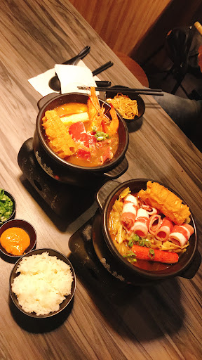 ~~~~~~~~~~~~~~~~~~~ 泰酸辣海鮮鍋湯頭味道很喜歡!很像泰式鮮蝦麵的味道 辣花椒川味鍋味點了中辣...