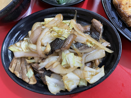 本身就滿愛吃鱔魚意麵的,剛好看店家是賣鱔魚意麵就毫不猶豫就進去用餐。 1.鱔魚意麵跟米粉我們都點大碗的,麵跟米粉的份量真的滿多的,鱔魚至少也都有4塊,雖然不難吃,但也沒有很道地的味道,它就是一碗很普通的鱔魚意麵,所以吃完後有點失望,但以價格來說大碗的賣90元算便宜。 2.雙蛋炒飯很好吃,有把炒飯的香氣炒出來,炒飯也粒粒皆明,還滿推的。 3.炒麻油豬肝很好吃,尤其它的薑有爆炒過,很香很好吃,而且豬肝份量也很多,一份才賣100也算便宜。 4.蛤仔湯湯頭鮮甜有大海的味道,蛤蜊也新鮮,只是我吃到其中一顆有帶沙,所以這點扣分。 5.炒空心菜有大火快炒出來的香氣,超好吃的~ 6.點餐的老闆娘感覺態度不是很好,但也沒有怎樣,就是沒有面帶笑容就是了...... 以上總結,個人認為店家雖然主打的是鱔魚意麵,但鱔魚意麵卻不出色口味平平,但還是可以吃,反而它的快炒類比較好吃,...