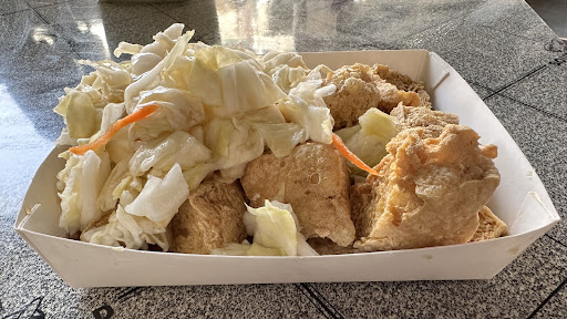 Read more這一間店是朋友介紹的,朋友說有多麼的好吃,因此找個時間便來吃看看啦一吃完之後,驚為天人這一間店的臭豆腐說實話在台南我吃過的臭豆腐內應該是NO.1(每個人口味不同!上述是我個人認知)臭豆腐炸的很酥脆直接吃沒啥味道不好吃但是搭上獨門醬汁+有些甜的泡菜之後哇!超級美味!尤其是臭豆腐吸附獨門醬汁後會讓你一口接一口停不下來.來店裡一次買10份的也大有人在因此來買的人要注意一下人真的很多要有排隊的心理準備!且基本上很早就賣完了(18:00前),所以可以的話早點來買不要像我一樣,來晚了只能...