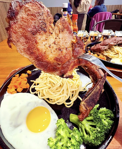 戰斧豬排 選用優質豬肉,經過精心炭烤,保留了豬肉的原汁原味鮮嫩多汁,骨肉分離容易,每一口都能感受到豬肉的鮮美與炭烤的香氣,讓人一口接一口,欲罷不能!