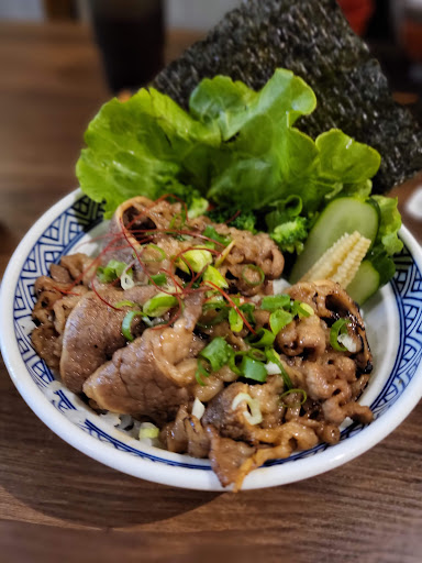 -野牛丼-吃起來,就是牛燒肉丼飯,他們的飯飯比較沒有醬汁,所以不會到整體吃起來太鹹,肉感吃起來不差,不會到不好咬。還能搭配丼飯附上的海苔以及小菜們一起搭配,添增不同風味。