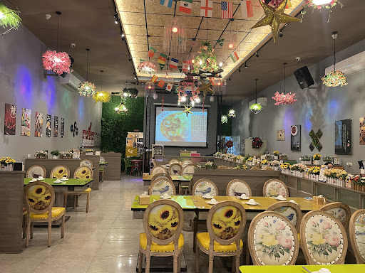 店內很寬敞,都是四人桌跟圓桌很適合聚餐,最前方就是歌手的表演舞台。