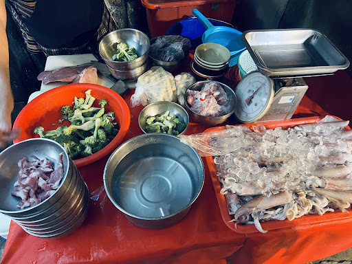 *第一次造訪者建議參考完點餐流程再前往,該店並無張貼點餐流程(但會介意不照流程的食客) ———————————————————————— 點餐流程: 1.門口右邊有可現燙海鮮、瘦肉、豬肝、蔬菜,有需要可先叫完並付錢,或是將市場內購買的海鮮交給門口阿姨川燙(會酌收費用,約90元) 2.進去後左手邊點麵,乾、湯,需要什麼配料(魚丸、餛飩),沒排隊的話自行入座(有很大機率要併桌)排隊的話等店家安排。 3.入座後會有人端紅茶出來,可順便喊是否要紅茶(一杯10元)。 4.麵上齊了才會收費。 5.調味料都在桌上(白醋、清醬油、只有香的辣油、白胡椒粉),川燙類只有川燙,不會額外放薑絲什麼的。 6.用餐完若要打包可自行到煮麵區後面有塑膠袋自行打包。 ———————————————————————— 優: 1.基礎麻醬麵小碗60大碗75,麵是麻醬混肉臊;麵裡頭還有放小白菜跟一點芹菜點綴。 2.份量很大,基本小碗很夠吃了。 3.麻醬香濃不發苦。 4.麵是白細麵,可跟老闆娘調整軟硬。 5.紅茶味道不太重,但搭配濃郁的麵蠻清爽的,很多在地人一次喊兩杯。 6.除了店家自己挑選的材料外,也可以在市場內購買海鮮付代工費請店家川燙;蠻多在地人買白蝦或火燒蝦川燙,可川燙種類需詢問店家。 7.魚丸味道濃厚,口感Q彈;如果加料會給大約四顆三種的魚丸。