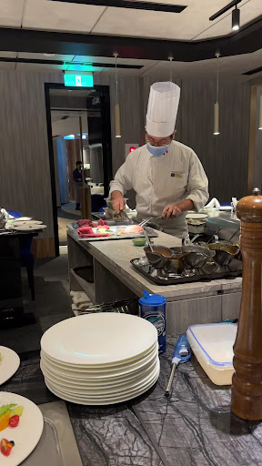 Read moreModern tappenyaki with a nice atmosphere. You should (have to?) make reservations as you are seated with other people (approx 10) with one chef. The photo below is one area of the restaurant with 3 "tables". We got the 3 beef styles and duck for 2 people. About NT3000 plus additional 10% service fee. Includes, which you choose, bread, small appetizer, soup, salad, main, dessert and drink (served at the same time as dessert unless otherwise requested). All great and the chef will explain some parts of the meal. Reason for 4 stars is we were there before and the duck had been better. Also our mango/strawberry smoothies had chunks of...