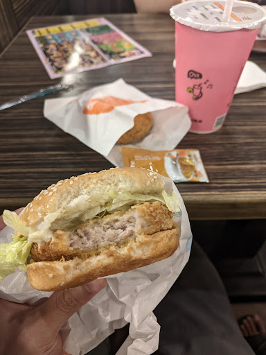 Read moreThe pork cutlet burger was nice, tasty, I think it costs around 65 only for the burger, if you opt for the meal, it will cost you 99 in total, you get a drink and potato cutlet( they call it potato pork cutlet but hell no there isn't any pork hahahah )
