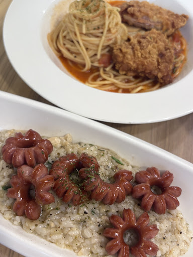 Nearby Shin Kong Mitsukoshi, there is a delicious and affordable curry and spaghetti place. Info: The prices for curry and spaghetti range from approximately 150 to 200 yuan. They offer set menus, and the food served has good value for money. The dishes are typically served in about 10 minutes. 👍 Recommendation: The curry chicken rice with fried chicken is worth trying. Unlike other affordable curry rice dishes, this one offers a generous amount of curry without additional charges. The fried chicken itself is well-seasoned and not dry. ✨ They also serve crispy and golden fries 🍟 as a side dish. The fries are thick and satisfying to eat, better than McDonald's or MOS Burger's fries! ✨ The garlic stir-fried spaghetti with fish fillet is refreshing and well-seasoned. The complimentary soup that comes with the meal is also enjoyable. The only downside 😐 is that the curry flavor in the curry cola pancake is not very pronounced, and the texture is not as soft and delicate as desired. Overall, the meals are excellent, reasonably priced, and filling. Next time, I would like to try the pork cutlet curry rice and other flavors of spaghetti.