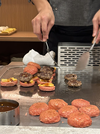 Read more這次點雙人龍蝦和牛餐點,還加一成服務費。 個人覺得,以這樣的價位和表現水準來說,這家餐點的細緻度不夠,料理手法和調味也不是很和諧。或許是為了要有創新的方式,但也因為這樣,讓新鮮又高級的食材失去了該有的味道,取而代之的都是每道料理的醬汁搶了主味。 像是和牛小漢堡,麵包體太甜,和牛肉塊無味,靠醬汁調味,下層麵包又有美乃滋,整體味道上很不協調,會覺得到底是在吃麵包,還是吃和牛或是吃醬汁。總之,沒有一個主題味。 龍蝦乾煎,煎到龍蝦肉過乾,沒水分就算了,本期待蝦膏的美味,也沒有。因為蝦膏的部分淋上一層類似起司的奶油醬,整個味道很不搭配,失去其新鮮龍蝦該有的清甜味,是個大敗筆。對了,他龍蝦還是全部疊加再一起半蒸煎的,我第一次看到高級鐵板燒這樣煎,或許是他的鐵板很小塊,又要趕時間吧。 另外鮑魚乾煎,也是淋上略鹹的醬汁,根本吃不出鮑魚的鮮甜。倒是那個絲瓜配上略鹹的醬汁剛好