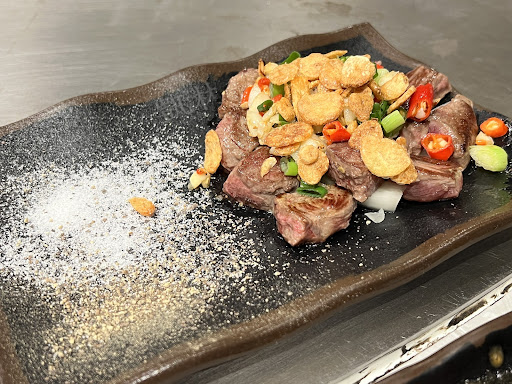 Read more《南紡內唯一一間鐵板燒》 一人價位約300-500之間 本次點的是雙人套餐,主餐是瓦片板腱牛排與霜降豬排,副餐點海味鮮蝦與椒鹽鮮魚 免費🆓續飯與湯 🥩肉類:熟度剛好不會太老,吃起來蠻大塊的很過癮也新鮮 🧂調味:雖然有胡椒鹽放在一旁可以自行調味,但本身味道還是偏重,可以調整辣度🌶️算不錯 💁服務:服務員會幫忙上白飯與湯,可以看師傅的手法偏嫻熟,料理台乾淨 P.S. 這家知道自己一次可以服務多少客人,當人數超過符號時,就算還有座位也會建議客人等候時間不硬接客人值得讚賞。 總之,下次應該會請師傅幫忙把鹽巴再少放一點 再光顧指數:🌟🌟🌟🌟/5
