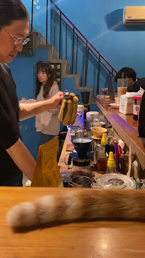 Try their pour over coffee with specialty coffee, they have 'today specialty' and I highly recommended it. The owner was really nice and he has many style to made the pour over and highlight the coffee. There is cat and so cute 🥰 ☺️ and first floor is good choice if you come alone. I've been there twice and i loved it 😻 .