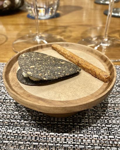 Read more感謝友人帶台北鄉下人吃MO.LAB的全值套餐,特別最愛MO.LAB特製小漢堡美味的口感,這餐飽到我先肉體登出然後再靈魂登出,MO.LAB五週年精選只有這一檔未來絕不復刻,偏愛日料少吃西餐的我對於主廚在料理上自信與手法十分佩服,所以無論如何都不想錯過這次頂規版本的精選菜單!!!吃完趕回台北都已經凌晨三點半,雖然過了兩天還是念念不忘在台南吃到身懷六甲的自己!!! #台南 #熟客制 #預約極困難 ↓↓以下為友人錄音後製作的筆記↓↓ ☆餅乾用墨魚汁及榛果製作所以會有墨魚海味的甜及榛果的香氣,內餡是用法國聖米歇爾山產的淡菜加上茴香根醬做成!棒狀的餅乾是用24個月的Parmigiano cheese 加上炒鬆的煙勳培根製作,所以吃起來會有一種鹹香酥鬆的口感! 搭配的茶是松針茶,是用日本京都焙茶加上決明子及松針泡的,喝起來有微甜及單寧的味道! ☆主廚用了不同質地的白花椰菜加上用白葡萄醃漬烘乾的龍蒿香草/炸過的油漬酸豆/烘到半乾綠薄荷,右邊是用北海道冰鮮干貝香煎淋上用葡萄做成的醬汁! ☆主廚奧斯卡之前在義大利餐廳工作時冬天會下大雪,所以這道冬季的餐點就用了下雪的概念製作看起來有點像雪景的料理!主食材用了冬天最肥美的日本鰆魚去做碳烤及稻燻,搭配的配料及醬汁吃起來味道微酸甜和微鹹香是用西西里番茄/黑橄欖/煙燻黑李及鹹乳清製作,最後加入用小豆蔻及咖啡做成的咖啡油,咖啡油味道及香氣跟碳烤煙燻鰆魚非常搭!白色泡泡是用月桂葉打的最後再加入甜薑根! ☆這道料理是用全素的方式來表現高麗菜,主廚挑選了兩種質地不同的高山高麗菜(一種是甜一種是脆)然後整顆用碳火去烤,烤到外表呈現碳化的狀態之後再把外層給剝掉然後精修做成類似高麗菜卷的型態!醬汁是用發酵過的菇加上西班牙黑麥啤酒/蜂蜜酒及辣根作成!最上面放的是生醃的蕈傘及苞子甘藍! ☆秋冬版本的塔,塔的內餡是用溫體兔肉/大蔥/糖漬柑橘皮/松子…做成醬汁是加入芥茉子做成的醬,左邊是佛手瓜切片做的卷,最後淋上芳香萬壽菊葉做的油! ☆漢堡肉是用澳洲純血和牛的「貝身」加上西班牙JOSELITO伊比利豬上蓋肉做成,所以肉香及油香都非常豐富!蔬菜部分用了煎香的白洋蔥及月桂葉並淋上一點點巴撒米克醋,漢堡肉跟麵包中間壓著的是辣味香腸/番茄及帶一點點辣味的番茄醬,漢堡肉上面放的是主廚先用Moscato蒸過的法國鴨肝! ☆主廚選用南義大利兩種不同的番茄,San Marzano番茄熬成醬汁而蛋茄切塊炸過讓茄肉帶有肉感,然後用切片的蛋茄將麵條圍成一圈,麵條是主廚用杜蘭小麥手工親做,最後在上面刨上Ricotta cheese然後加一片炸過的茄子,最後在放上蘿勒葉嫩芽,醬汁是用溫體的牛尾/牛皮/牛心/紅酒及蔬菜熬煮的! ☆藍龍蝦義大利麵,醬汁是用煮藍龍蝦的高湯/牡丹蝦頭高湯/雞高湯以及加入用煮聖米歇爾淡菜的水去加依思尼發酵奶油及番紅花做成的淡菜口味奶油,最後還另外再加入兩隻龍蝦的肉泥做成!這個麵的蝦肉鮮甜熟度適中,主廚自製的杜蘭小麥麵條吸附了醬汁之後充滿了鮮味 ☆主廚用了5種不同的番茄去做澄清番茄汁,然後用了三種程序來煮這個燉飯!第一個程序是在乳化時加入Mascarpon echeese...