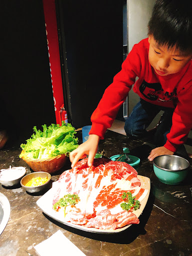 再讓我驚呀的裝潢跟音樂都是我喜歡的 最值得表揚的是服務生都很熱情跟有禮貌 他們沒有服務鈴 但服務生會一直巡桌但不會去妨礙到客人用餐 烤網會一直主動更換,食材也非常新鮮 這次點了牛拼、牛舌、魚下巴、蛤蠣、包肉用生菜還有草蝦!送來的時候蝦身是剝殼撥好的 天啊!整個是戀愛的感覺! 平常會有服務人員代烤,但因為今天剛好是情人節,所以只有聽說有時間限制兩小時,以往沒有限制,也太棒了! 還有壽星招待,分為當日壽星(提醒一下要提早預約),當月壽星!招待內容不同!