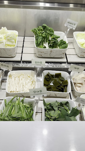 我點的是 剝皮辣椒鍋✨60 榖飼亞麻籽低脂豬5 oz✨360 點白飯可以續 他的蔬菜自助吧是走健康路線 菜都洗得蠻乾淨的 而且很新鮮 不會看起來爛爛的 提供滿滿的蔬菜菇類 大約20種 沒有火鍋料那些 需要的話還是可以單點 有一些比較少見的像是莧菜 奶油白菜 這裡的芋頭很好吃 煮完不會散掉的!! 會變的像是芋頭泥很綿密 很甜!