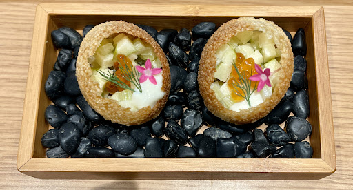 ✿ - 松露.燉雞.馬芝拉起司.熟成鴨蛋 這道熱前菜是我跟老公不約而同的第.一.名!外表看是個炸餃子,上面以熟成鴨蛋作點綴,感覺不太起眼,但咬下去真心中華一番的仙女在我腦中熱舞誒!餃子外皮很酥脆,咬下後內餡的燉雞加上馬芝拉起司及松露醬,整個在口中爆開,濃厚的奶香、松露香在嘴巴殘留久久揮之不去,太愛了好想再吃一次!好久沒吃美食吃到這麼雀躍了我 XD