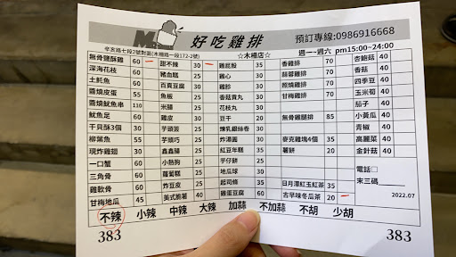 Read more推薦雞排、炸皮蛋、杏鮑菇、無骨雞腿排土魠魚和雞蛋豆腐。東西好吃,店面大 且店內有些許座位 雞排口感不錯,大推超香的炸皮蛋 蒜味鹹酥雞很夠味雞排有多種口味可供選擇,個人則是偏好蒜香口味,外酥內嫩的雞排搭配些許蒜片非常夠味,更有值得一提的照燒口味,在醬料甜度的拿捏恰到好處,在這些配料的變化下原先單一的炸雞排衍生出截然不同的滋味。 招牌的炸皮蛋也別具特色但價格偏高,比較可惜的是炸物中有不少地雷,其中魷魚足個人覺得非常雷,光一份就要55元不但份量少且幾乎都在吃粉沒有鮮味,這店面不小 而且算是頗乾淨 品項也不少...