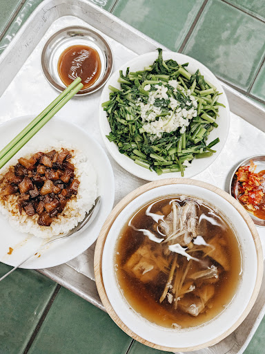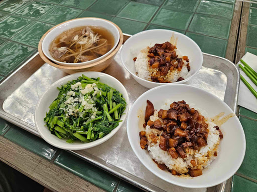 這家店提供的餐點選擇並不多,我也就很中規中矩的點了一碗湯、一碗飯、外加一盤菜。 結帳的時候,我還楞了一下,原來,點湯的話,滷肉飯只要10塊,真是佛心呢!