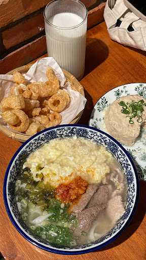 主食套餐的部分,湯底本身出乎預料的就很有味道,也跟忠貞吃到是不一樣的風情, 相同的都是清爽不膩口,炸豬皮也是酥脆的剛剛好,不會像有些脆到會刮上顎的程度,放進湯裡那啵啵的聲音很快樂。 如果不知道選什麼主食的朋友,我建議就選米干,可以吃到招牌與米製麵食的香氣。 要飽足感跟口感則是粑粑絲。