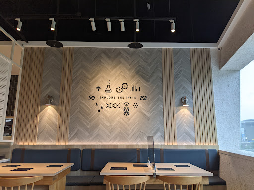 石研室南港中信店位於中國信託金融園區C棟3樓,環境明亮寬敞,裝潢風格帶有輕工業風和文青感,營造出舒適的用餐氛圍,部分座位還能欣賞到窗外景色。
