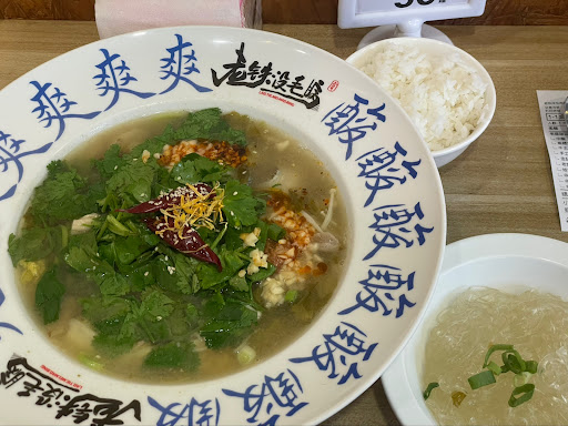 第一次吃的 敢吃酸的 酸度在點單就得記得跟店員說要加重,敢吃酸的請不要客氣;會讓您的餐點美味許多 點單記得也多點一份老壇酸菜,花不了多少錢,味道卻是扛扛地 辣: 辣度可以透過店家提供泡椒來改善,會酸也會辣,帶點鹹更是不可免,但酸菜魚本身就口味重,無妨,整體風味一下子就可以簡單獲得提升 那個紅油辣子別放啊,那可是邪魔歪道,其他調味醬也顯得很多餘,味道拉滿根本不需要調味醬料 香/美 蒜頭也是好東西,左右放一些滋味美的很,拌到湯裡萬一還能過到油就太棒了 香菜是個增香增色的加分好東西,敢吃務必2份點起 豆芽做底不得少於三份,油條單點也不貴. 放掉店家供應的碎料,單點吧,實在又好吃 其他肉品就看各人口味, 反正魚肉吃到後來都會碎,湯勺免不了 主食 白飯不錯,...