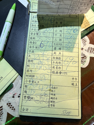 I didn't want to deal with the hassle, paid, and they were generous to give us 700NT in change, but provided no receipt (發票). We took the leftover home and then found out they didn't pack up the crab. What a convenient way to destroy evidence of shadiness!