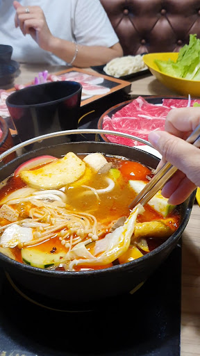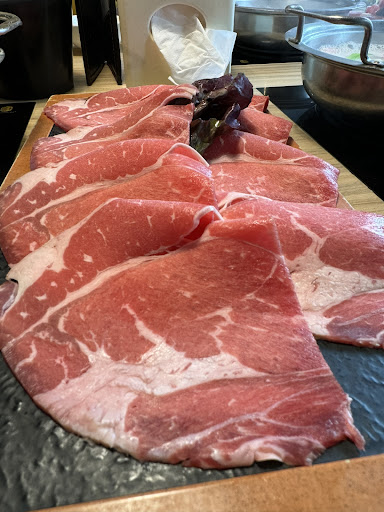 on the 2nd floor and at the window seat with view of busy street of Ximing Road. The food overall is high quality and very good in term of the cut. Choice of Drink is wide and buffet style vegetable choice is decent. They also do provide as part of buffet is fish paste and fish slices which is fairly fresh. Japanese style soup base which is well liked by my family. The price is good too for the quality.