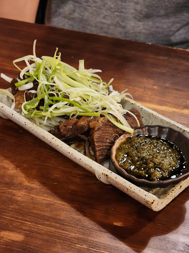 燒椒牛臉頰 5-6片 $199 :從地獄又被拉回天堂,因為這道超級好吃!雖然蠻貴的但很特別的味道很好吃,牛肉很軟嫩又有香氣,那個醬很像我男友家鄉阿根廷的烤肉醬...