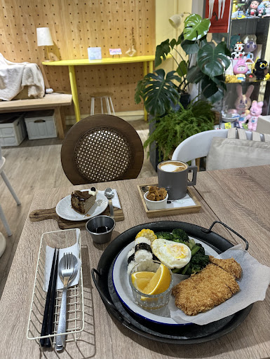 Lovely cafe with a lot of art and personality. I purchased a postcard that was a play on Matisse’s painting Dancing, but with cartoon tigers. As for food, I ordered the tonkatsu set (猪排套餐), honeycomb latte and hojicha basque cheesecake (焙茶巴斯克起司蛋糕). I thought they were all quite tasty, though the tonkatsu set side dishes could’ve had more flavor/seasoning. Hojicha cheesecake slice was slightly on the smaller end.