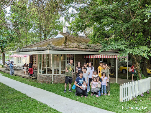 The outdoor sitting with the slide and swing in the background makes it quite an American lunch experience!