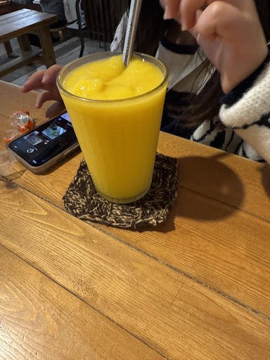 Read moreAdorable little cafe with very cheap prices for the area. Depending on the time of day, it can get pretty crowded with limited seating but it seems like the morning usually has a spot. The cafe also has a orange tabby who loves to lounge about on all surfaces. Strawberry smoothie: $70
