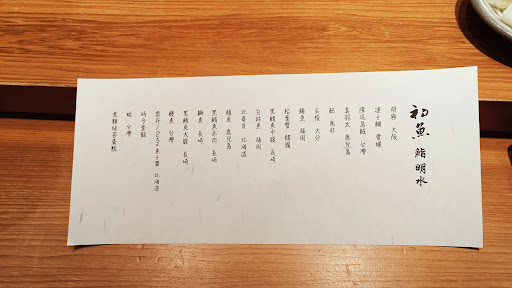 初訪 初魚鰭 明水店 過往都是去品嚐初魚鐵板燒 開始用餐時阿偉師父不違初魚根本的開始介紹起今日用餐材料及共20道料理 聽到有20道要吃 本猴嚇得是吱吱了兩聲生怕吃不完 但還好是多慮了 因為每道份量都較少 其實吃到最後不會有吃到太飽的問題 甚至最後的釜飯有多 我還給他多吃了兩碗 爽賺一波