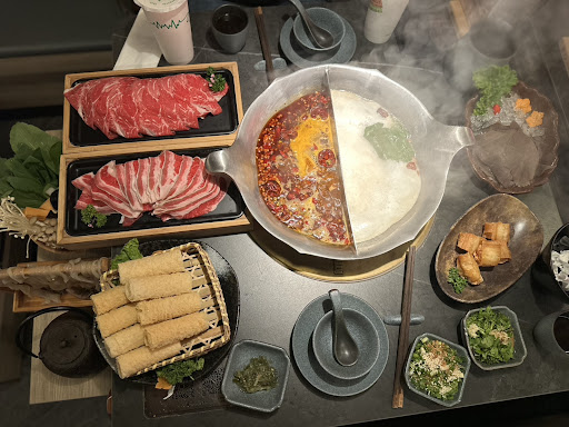 📌음식 5-6가지 육수 중 1-3개 선택 가능하고, 흰색 닭국물은 국밥보다 진한 국물이 일품이었고 오리 선지, 두부 등이 들어간 빨간 육수도 정말 맛있게 먹었습니다. 육류, 해산물 등 단품메뉴는 여타 훠궈집과 크게 다르지 않습니다. 추천메뉴는 새우완자입니다. 셀프바 소스구성도 깔끔했습니다. 생맥주는 산미구엘과 에델바이스 있고 산미구엘 훌륭했습니다. 현지분들은 버블티 시켜서 같이 드시는 테이블도 많았습니다. 주문하는데 불편했을까봐 오렌지 샤베트, 자두푸딩 등 서비스를 많이 챙겨주셨습니다. 인당 35원 추가하면 먹을 수 있는...