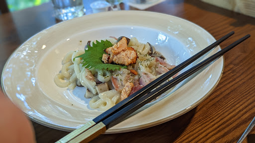 It's a tranquil restored japanese house that used to be the place for soldiers to meet their future wives back in the day. The japanese garden is nicely maintained (probably not to japanese standards but still pretty). The koi pond is filled with beautiful large and small koi fish. The green house houses a Chinese restaurant with slightly higher end prices where you can dine with greenery all around you. We opted for the bookstore tea house where there's a minimum order of 2 drinks. For lunch there's a sashimi set and japanese steak set that includes dessert and a drink for 780. For the afternoon tea you have a light meal of udon soup or creamy Japanese style udon and some other dishes with a coffee/black tea for 350. An espresso is 120 and coffee is normally 150. Food is alright but it's quite nice to dine next to the japanese doors next to all the greenery. You can reserve a tatami room if you have a larger groupm Credit...