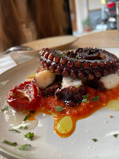 👉香煎章魚甜椒醬 $320 章魚如此的活生生血淋淋的出現在面前! 而且因為是給整條的章魚腳 不同的部位其實吃起來口感也是不太一樣 但整體而言就是嫩Q嫩Q 有些地方韌韌 但又好吃!