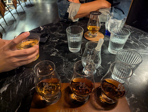 The bar has a relaxed yet upscale vibe, perfect for sipping some of the finest whiskies. What really stood out was the selection. I tried some unique options, like their peated vinho, a single cask wine cask finish from the Bordeaux region, and a few sherry cask variants. Each one was a real treat, offering distinct flavors that you wouldn’t find everywhere. The experience of tasting whisky directly from the barrel was also something I’ve never tried before, and it added a whole new level of enjoyment.