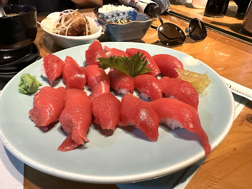 My friend Mav introduced us to this hole in the wall down a random side street. With the enticing expectation fresh, huge salmon slabs, Mav made us a reservation to get us seated right away. We got the deluxe chirashi (with special addition of scallop for 120) (comes with a soup too!), 2 Hokkaido scallop orders, deep fried crab roll, hamachi kama, and veggie. This was way too much food for our party of 3 adults. It was fairly loud inside due to the cramped seating, and the bathroom through the tiny kitchen area (where you have to squeeze past the worker making tiny fish dishes) is a little odd, but the overall ambience is of a small izakaya. Restroom itself is tiny, you barely have room to turn around. Fun for a good dinner out with adults. There is a small enclosed area more exposed to the outside at the entrance where there were 2 parties with young kids, and would definitely recommend aiming for that area if you have little ones. It's quite cramped inside. The table next to us got a hot pot so it was extra warm. Sashimi was fresh and very good, pretty much every piece was melt in your mouth despite the thick cuts. I wasn't a fan of the egg roe slab inside the Hokkaido scallop, but my understanding is that they are quite expensive. I took pictures of every page of the menu. Most of it has English which was helpful. I overheard the wait staff telling someone else that the items with red numbers are not available for dinner, so keep that in mind if those look...