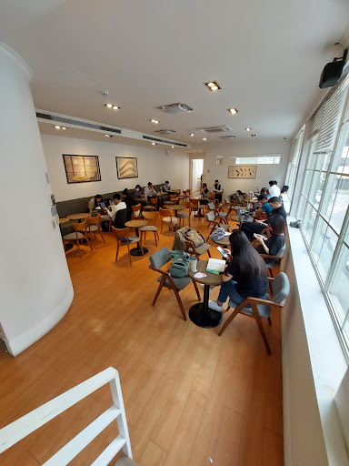 We stopped by here to get some work done before we leave Taiwan. The place was pretty clean! The Wi-Fi works great! There are three floors to this cafe. We sat on the 3rd floor. There is a restroom on every floor. The cafe is pretty big! The table is a little short compared to the chair making it a little hard to work on the laptop if you want to sit by the window. After you order your drinks or food, the cashier will give you a timer for you to pick up your food or drinks when it goes off so you have to just go ahead and pick your seats once you ordered your drinks or food. We only ordered drinks. We ordered Thai Coffee and Coffee Milk Tea. The drinks were just okay. We gave this cafe five stars because we mostly wanted a clean, quiet place to work with good Wi-Fi which this...