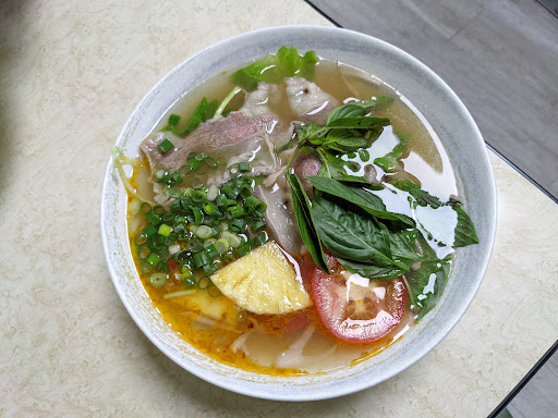 店家位在內湖路二段尾段,靠近金龍路,如果開車前來汽車要停在內湖捷運站附近的收費停車場,離捷運站非常近,大約步行2分鐘就可以抵達。店內空間寬廣舒適,有蠻多座位的,而且座位都很乾淨,除了越南料理之外還有販售越南口味的調味料可以選購。點好餐點將菜單交給老闆即可,餐後結帳。 店家提供道地的越南料理,首推炒河粉,河粉是比較粗一點的河粉,吃起來很有咬勁,而且店家大火快炒過後,整個河粉充滿快炒的焦香氣味,牛肉的香氣也很足夠。炒飯的部分也有不錯的表現,有炒出香氣,而且米粒粒粒分明,只是比較偏油膩一些,油再用少一點會更好。湯河粉部分靈魂的高湯喝的到濃郁的大骨香氣,再搭上九層塔香氣更為提升。如果想要吃口味重一點可以選擇番茄湯底,會有番茄的酸與香氣,如果想吃辣的話可以選酸辣口味,辣度不會太高,大約為微辣的程度。紅燒牛腩也是不錯的選擇,牛肉不會太韌難咬,來帶有一點Q度。湯類餐點都湯頭都各有風味,而且喝完後都不會覺得口渴。 店家是道地的越式料理,炒河粉與炒飯都有不錯的表現,湯類餐點也都不錯。酸辣口味還蠻特別的。老闆態度很和善,用餐空間乾淨。如果來到內湖想吃越式料理,非常推薦可以來這裡。