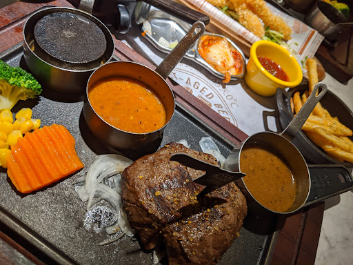 Read moreA chain restaurant serving aged beef. The restaurant itself is on the smaller side with tables that are quite close together. The menu indicates there’s a side buffet with the steak but it’s small, consisting of a couple of soups, kimchi, pickled vegetables, a selection of ice cream and drinks. The borscht soup tasted good with tender chunks of beef. I tried the flat iron steak, which appeared to be cooked medium rare despite a request for medium well. Never fear - the steak came with a small heated stone so that you can heat pieces to the level of “doneness” you prefer. I’ve never seen that before. It’s a nice idea. I did enjoy the pepper sauce, which had a spicy kick to it. Vegetables with the meal are served raw and cold. I was not expecting that and not my cup of tea at all with steak. Ice cream was good quality. Service was very efficient. Food ordering is done using a web app. The prices are a little higher than I would have expected for the restaurant style in Taipei but overall not a bad deal including soup, ice...