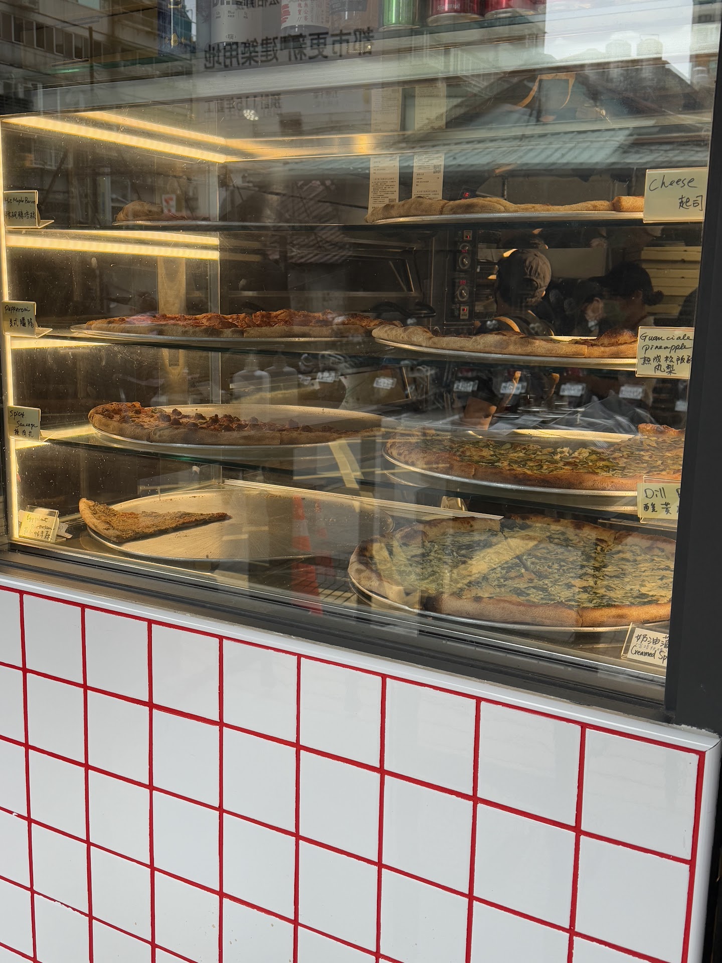 Read moreThe Slice Shop in Taipei is a cozy, no-frills pizza stand that delivers a true New York–style grab-and-go experience. The storefront is minimal—just two narrow standing tables and a walk-up order/pickup window—which immediately sets the tone: it's all about the pizza. The menu includes a few classic staples alongside rotating seasonal options, which keeps things interesting for repeat visits.