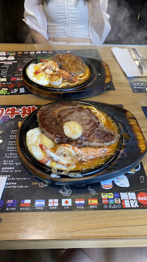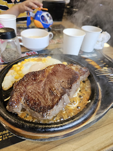 Read moreJust randomly came across it on Google. Figured to give them a try. Steak was pretty good but in Taiwanese style which Came with noodles with meat sauce. A sunny side egg and corn on a burning hot skillet. We got the set for 2 for only 1100 came with a 300g ribeye, 220g filet, 2 scallop and 2 shrimp. Steak was cooked on point medium rare, I would get the medium next time. Does lack of salt and pepper which they will provide along with A1 steak sauce. The cut was a thick cut as they mentioned. Draught beer on pints about 500ml for only 100. Free flow sodas, garlic bread and corn soup. And ice cream at the end ! What a meal. All in all for about 1400. We...